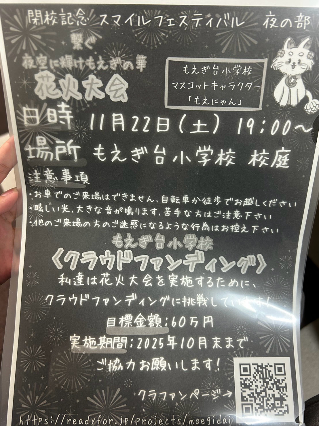 今年度で閉校となる「もえぎ台小学校」では、6年生の児童が中心となって「夜空に輝けもえぎの華🎆花火大会」という素敵なプロジェクトを立ち上げました✨