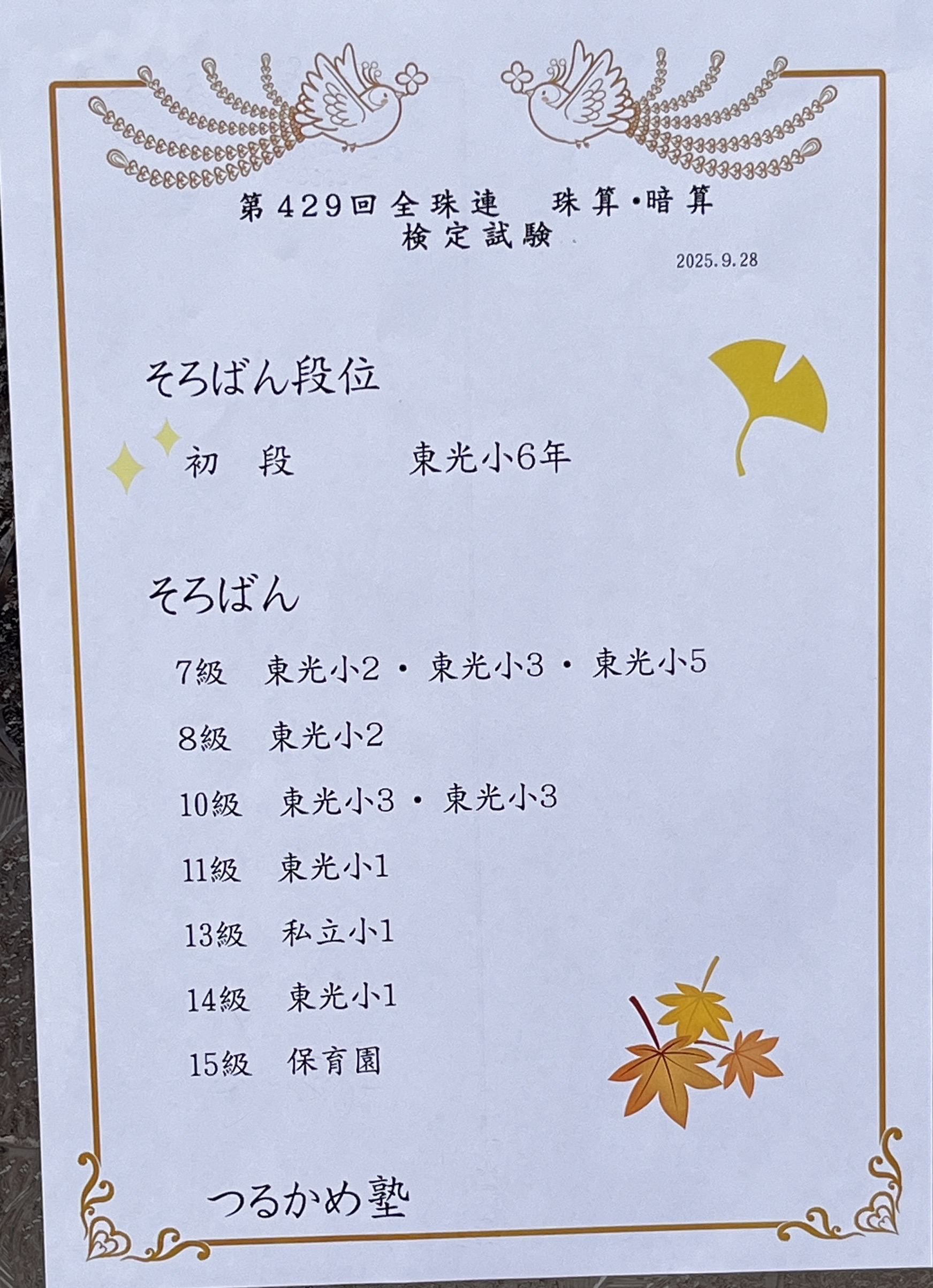 当塾には、わり算2種1分40問以上を 一つも間違える事なく解ける暗算力を 持っている素晴らしい生徒さんが沢山✨ 二学期の成績にも期待しててくださいね♪