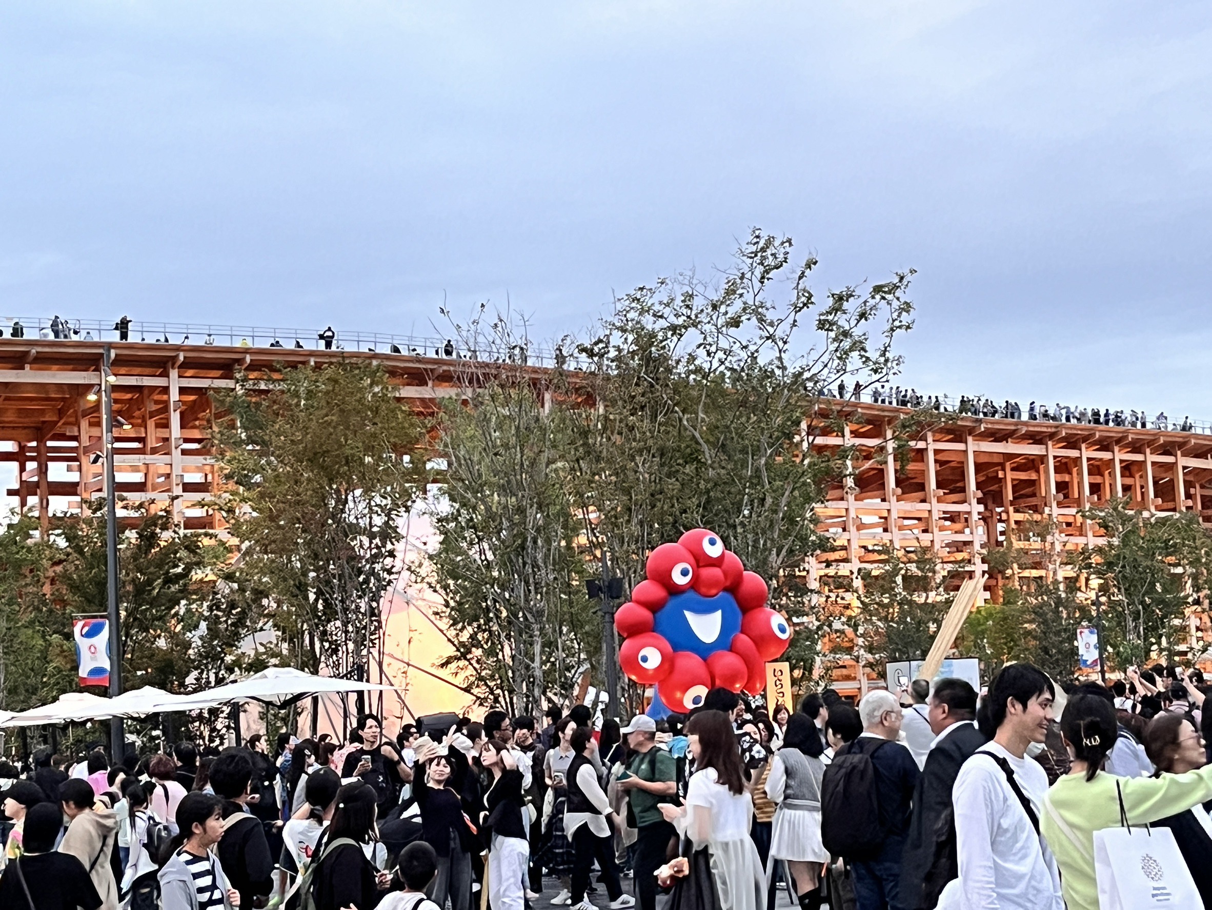 翌日のセミナー出席の為に、東北から お友達の先生がみえたので午後から 一緒に万博へ❣️ 午後とはいえスゴい人人人人人人😅 並ばなくて入れそうなパビリオンに 2個入ってお土産を買って退散💦 お天気☀️.°が良くて10月でも暑い くらいでした😅