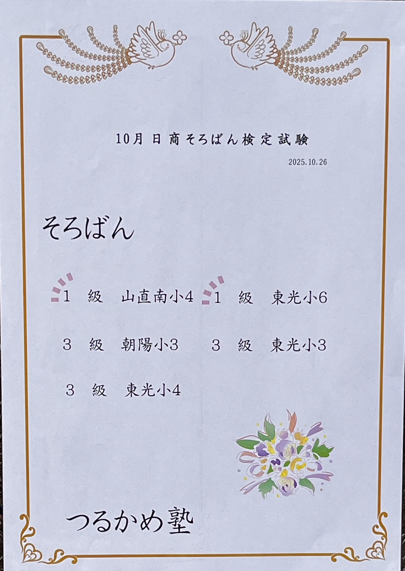 下級とあんざん検定の🈴おめでとう🥰 コツコツ頑張った結果が今月もたくさん♪ 証書が来るのを楽しみに待っててね❣️ 良く頑張りました💮