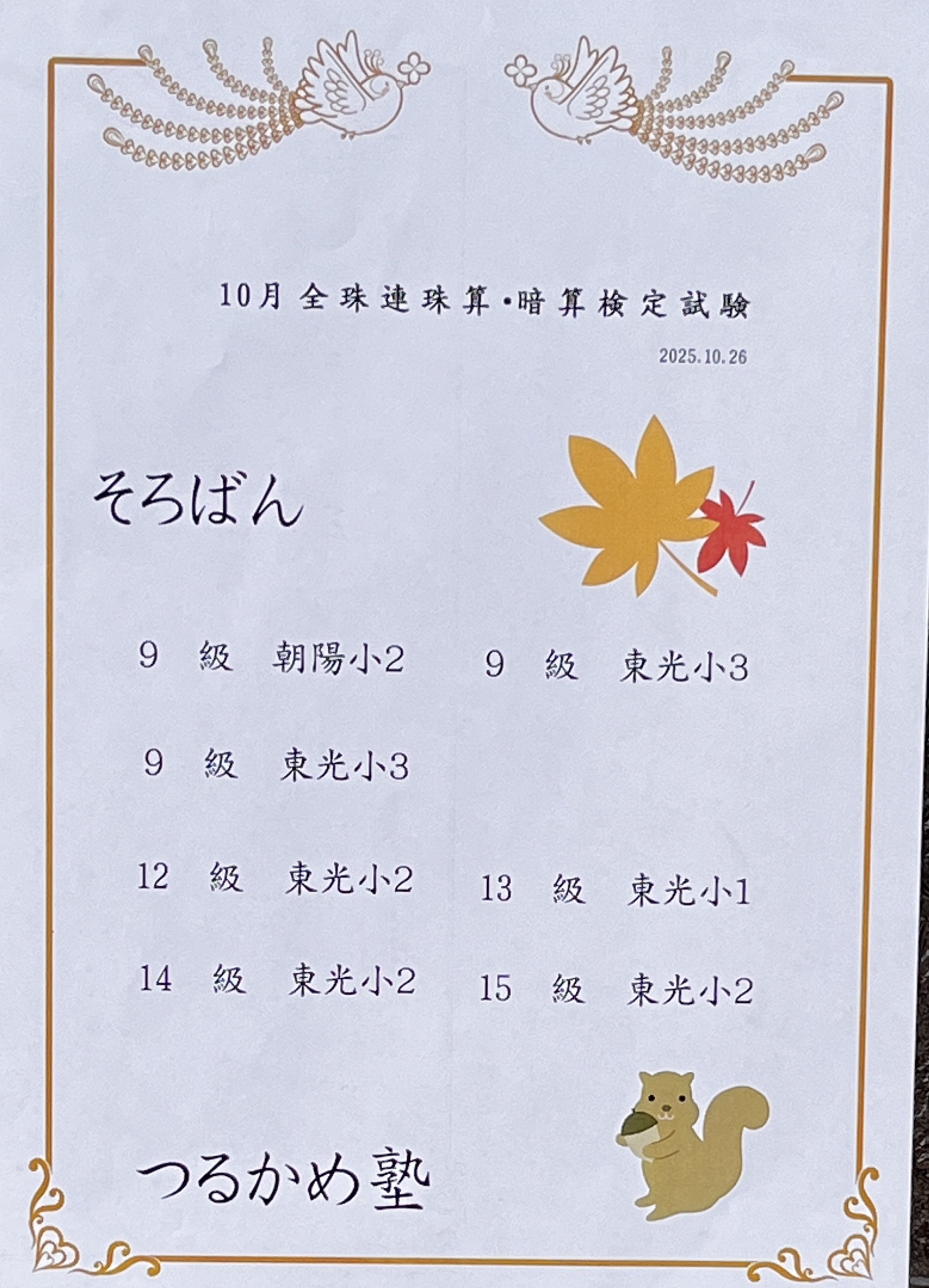 10月度全珠連検定❗️ 2025年10月31日