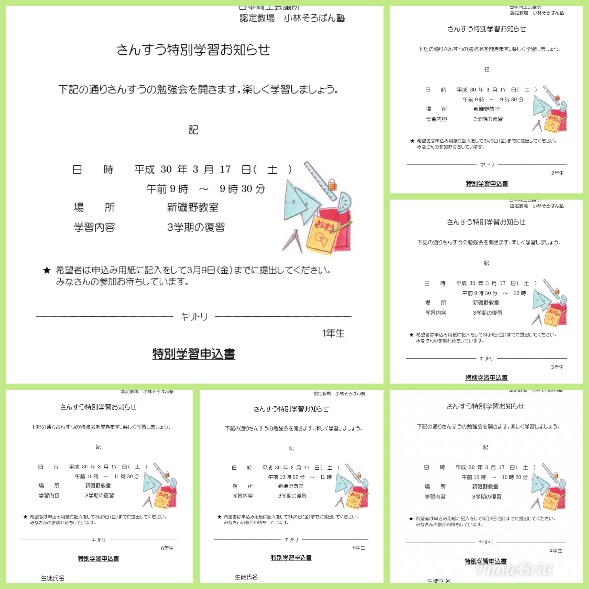 3/17(土)のサポート授業はさんすうです♪