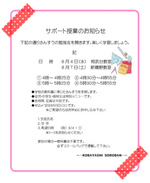 ご希望の方は8/3(火)までにLINE又はメールにてお申し込み下さい。