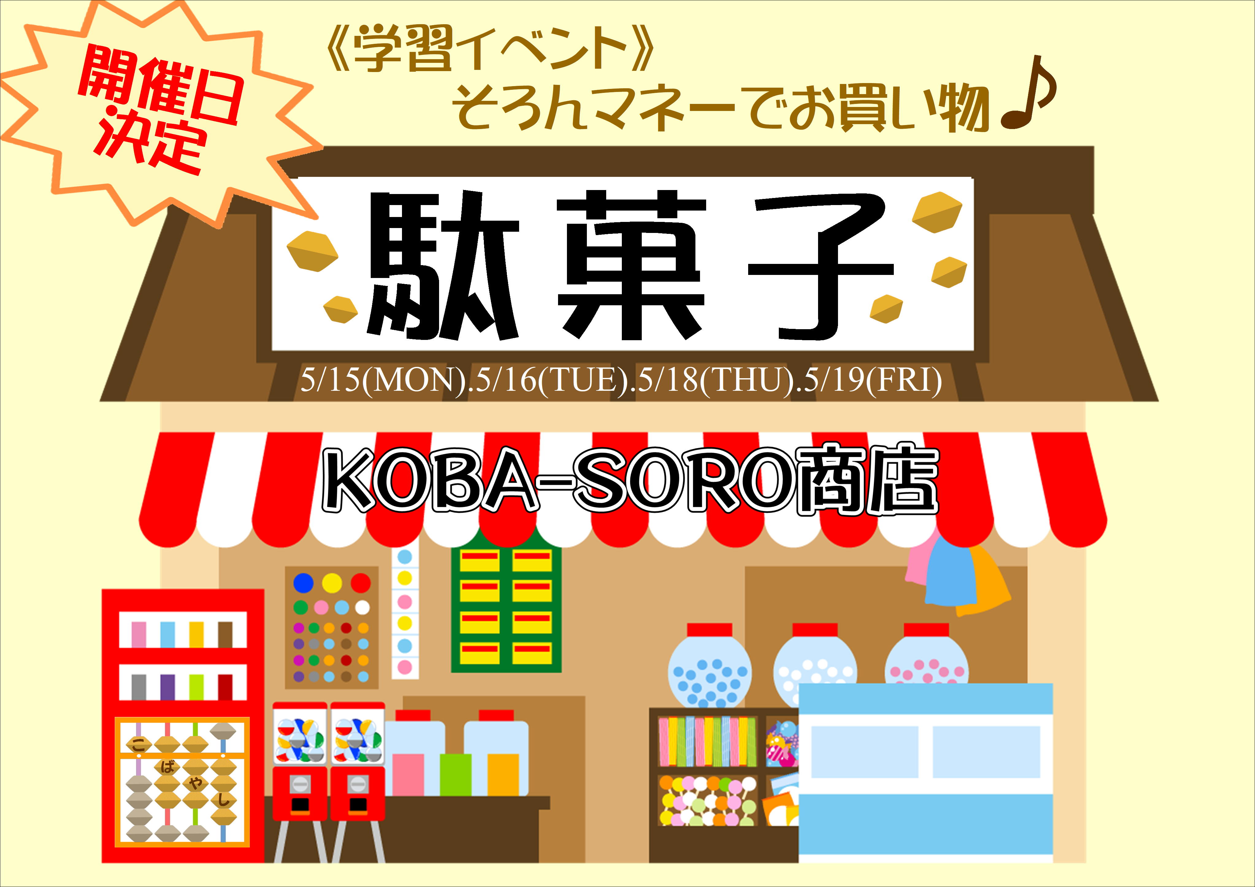 学習イベント「KOBA-SORO商店🍭駄菓子屋さん🍭」開催日決定✨