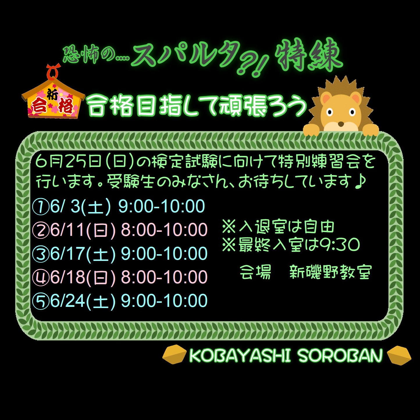 本日、午前9時より「スパルタ特練」始まります‼️