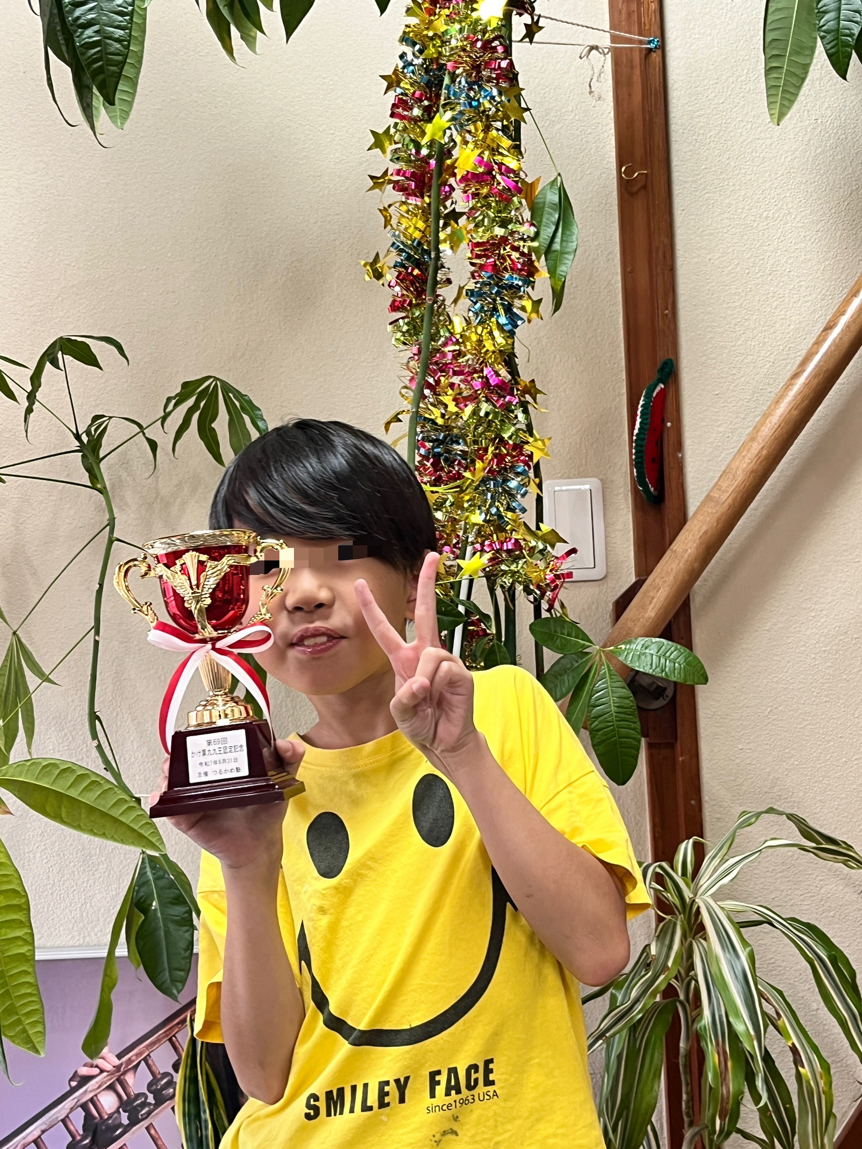 本日、8月の九九王👑に名誉の トロフィー🏆✨を授与致しました❗️ 毎月ずーっとずーっと頑張ってて いつも惜しくも後で1つの所だったので とっても喜んでくれました👍✨ 九九王の認定は、次月のお便り配布の 時まで分からないようにしてるので サプライズ🎉大成功😁 みんなのおおきな拍手に包まれながら 受け取った努力🏆を、この次にも 活かしていこうね(^^♪