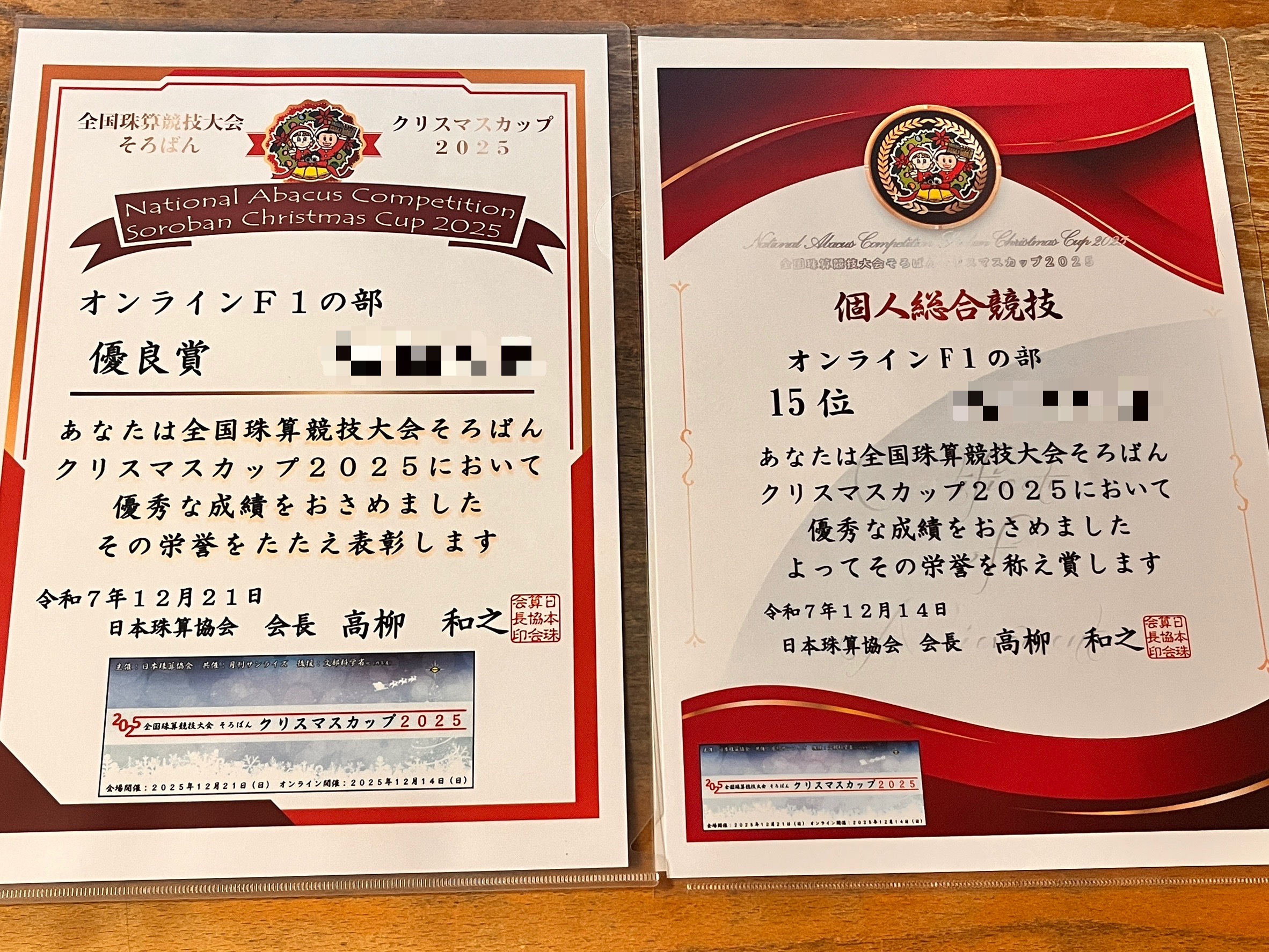 クリスマスカップの賞状が届きました📄✨ 2026年01月12日